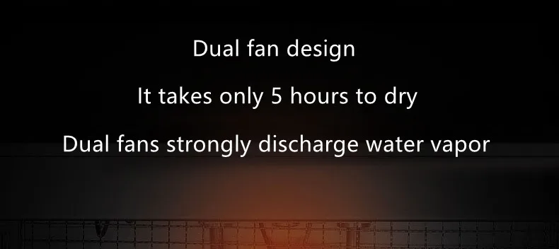 Dual fan design / It takes only 5 hours to dry / Dual fans strongly discharge water vapor