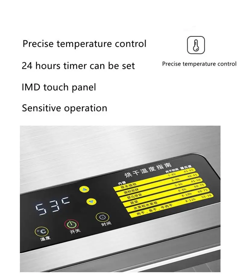 4. IMD touch panel, sensitive operation, precise temperature control, uniform color of the air-dried product