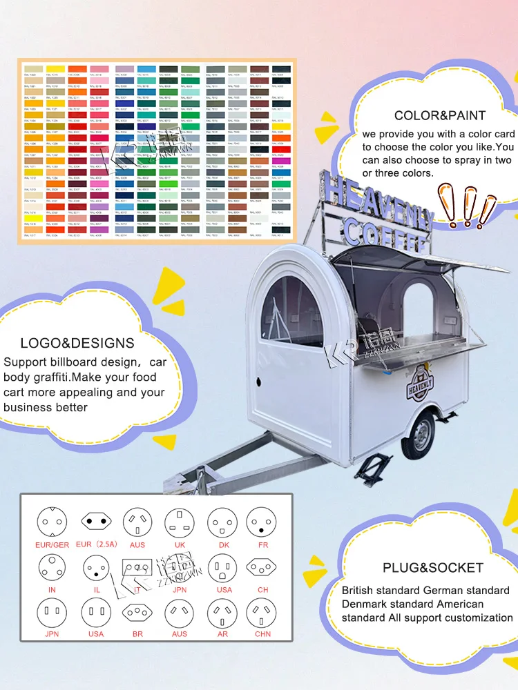 Fully Equipped Fast Street Trailers Retro Mobile Food Cart with VIN CE COC Feedbacks