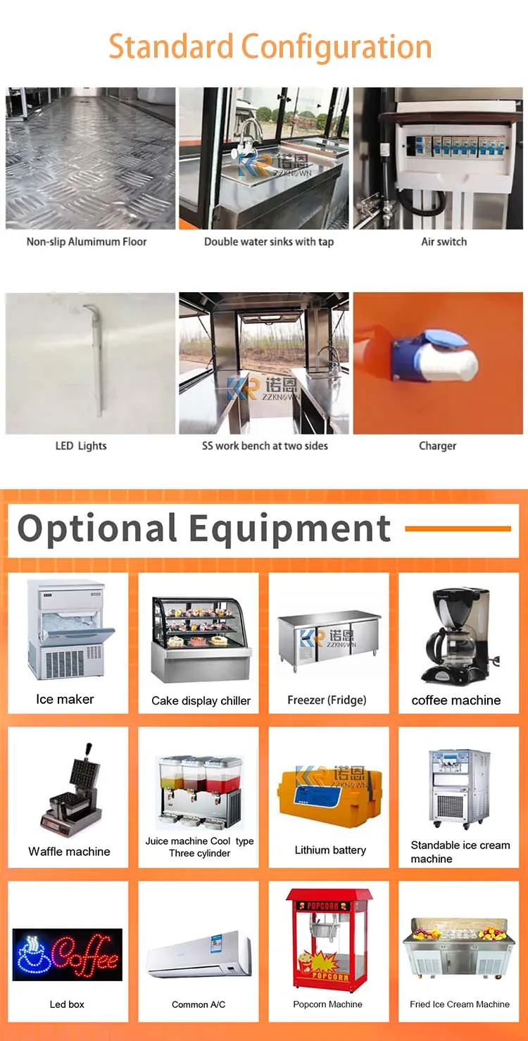 Customizable Food Cart Trailer with Kitchen Catering Businesses carts Internal Facilities