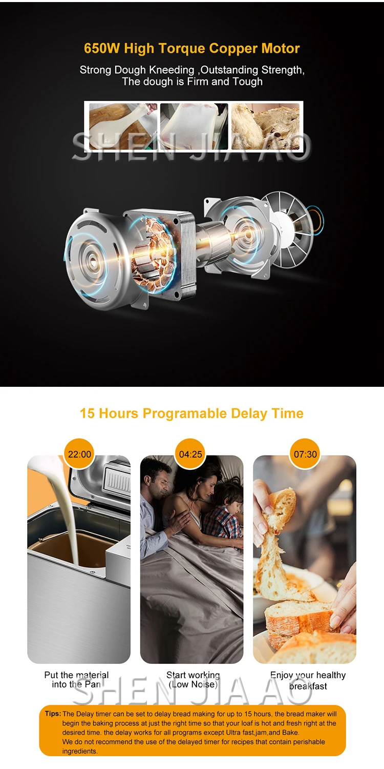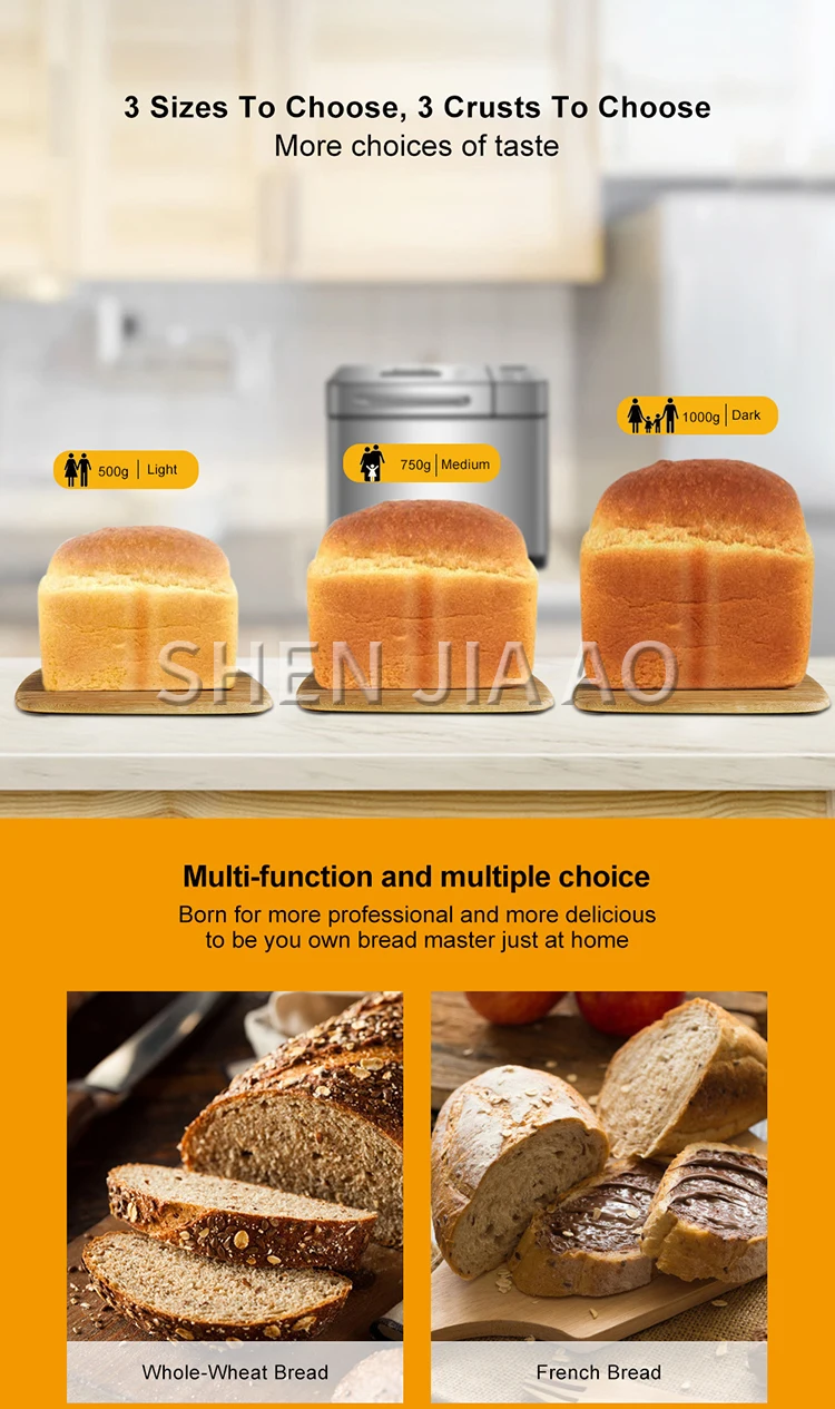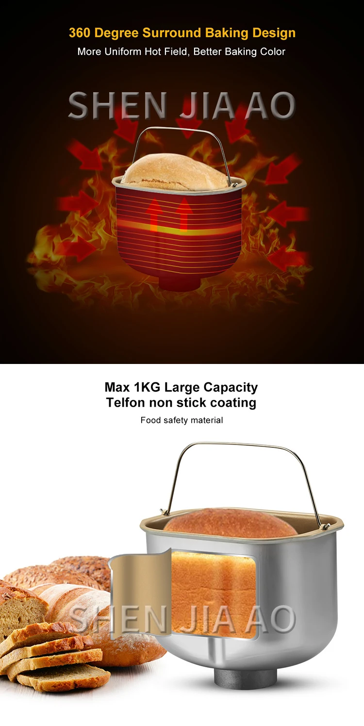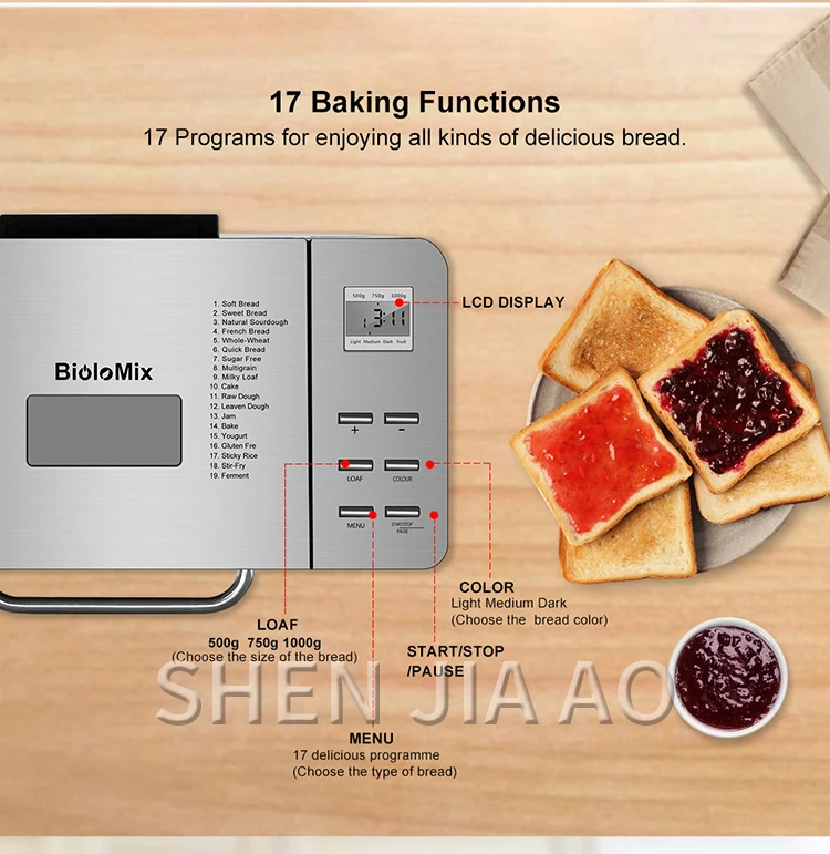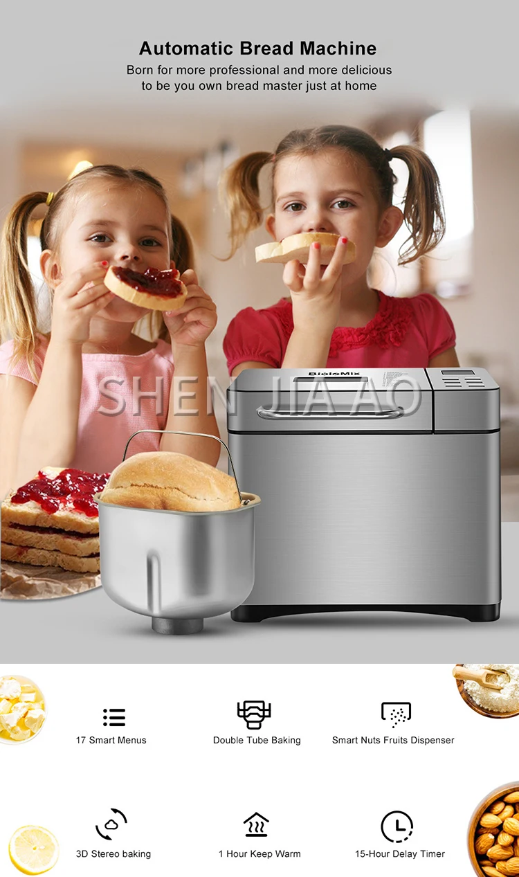 1KG Bread Maker Stainless Steel Automatic Stir Raw Dough Dispense Fruit/Nut Bake 3 Sizes Toaster 17-in-1 Bread Machine