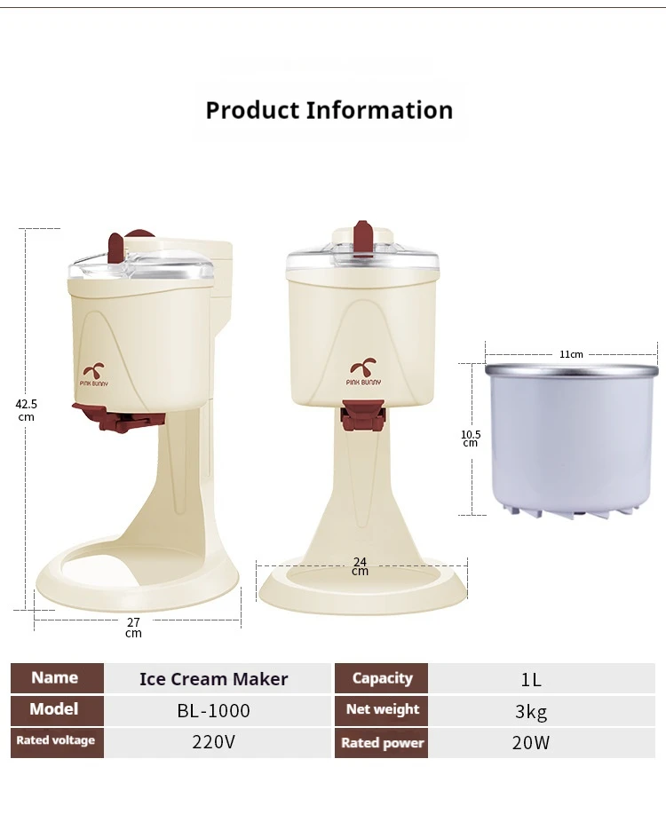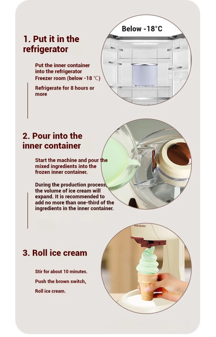 Beni Rabbit Home Ice Cream Machine, Children's Fruit Cone Machine, Fully Automatic Small Ice Cream Machine, Mini Ice Cream Machi