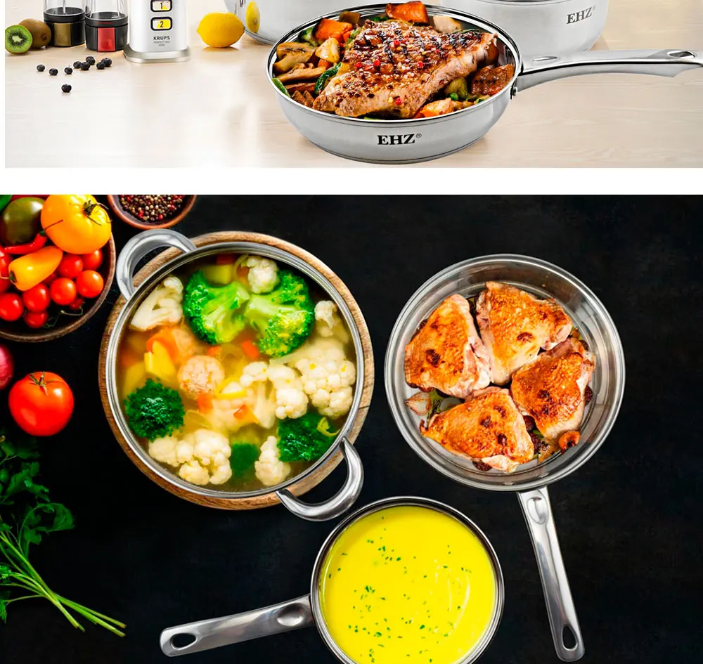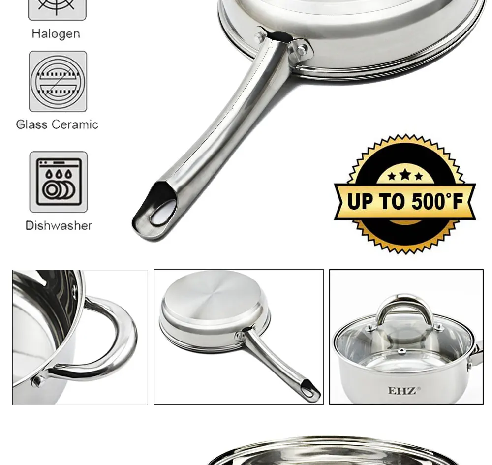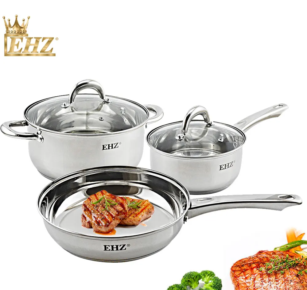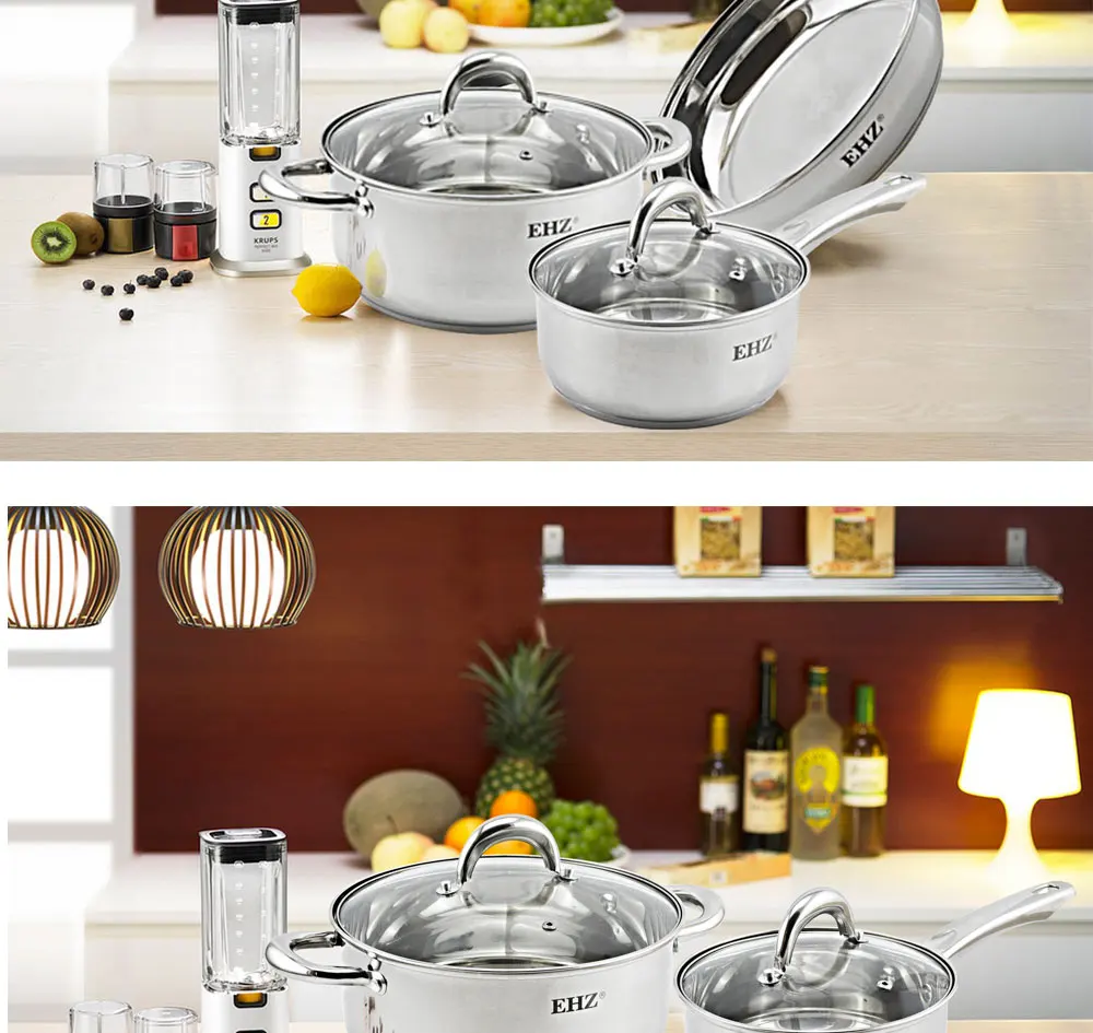 EHZ Cookware Set Stainless Steel Pots Composite Bottom Saucepan Saute Steak Pan Non Stick Fry Pan with Lids Kitchenware Set 5PCS