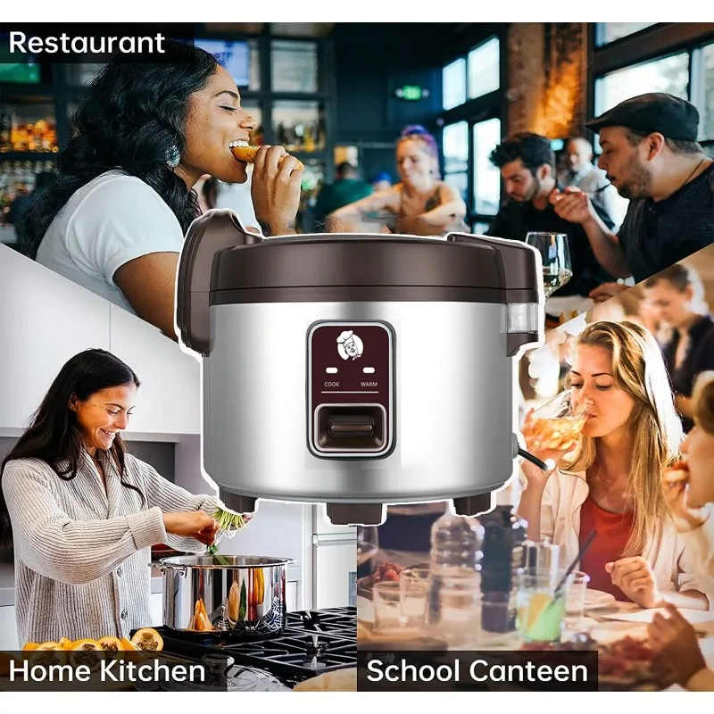- Large Rice Cooker: Large Commercial Rice Cooker The larger, deeper rice warmer has a 13.8Qt capacity to serve nearly 18-28 people, making it ideal for professional catering, such as Asian fast food restaurants, sushi bars, or snack bars