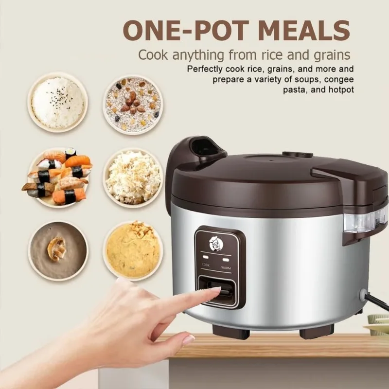 - Easy one-touch operation: Commercial rice cooker automatically cooks the rice for the correct amount of time, then switches to keep warm mode for up to about 12 hours