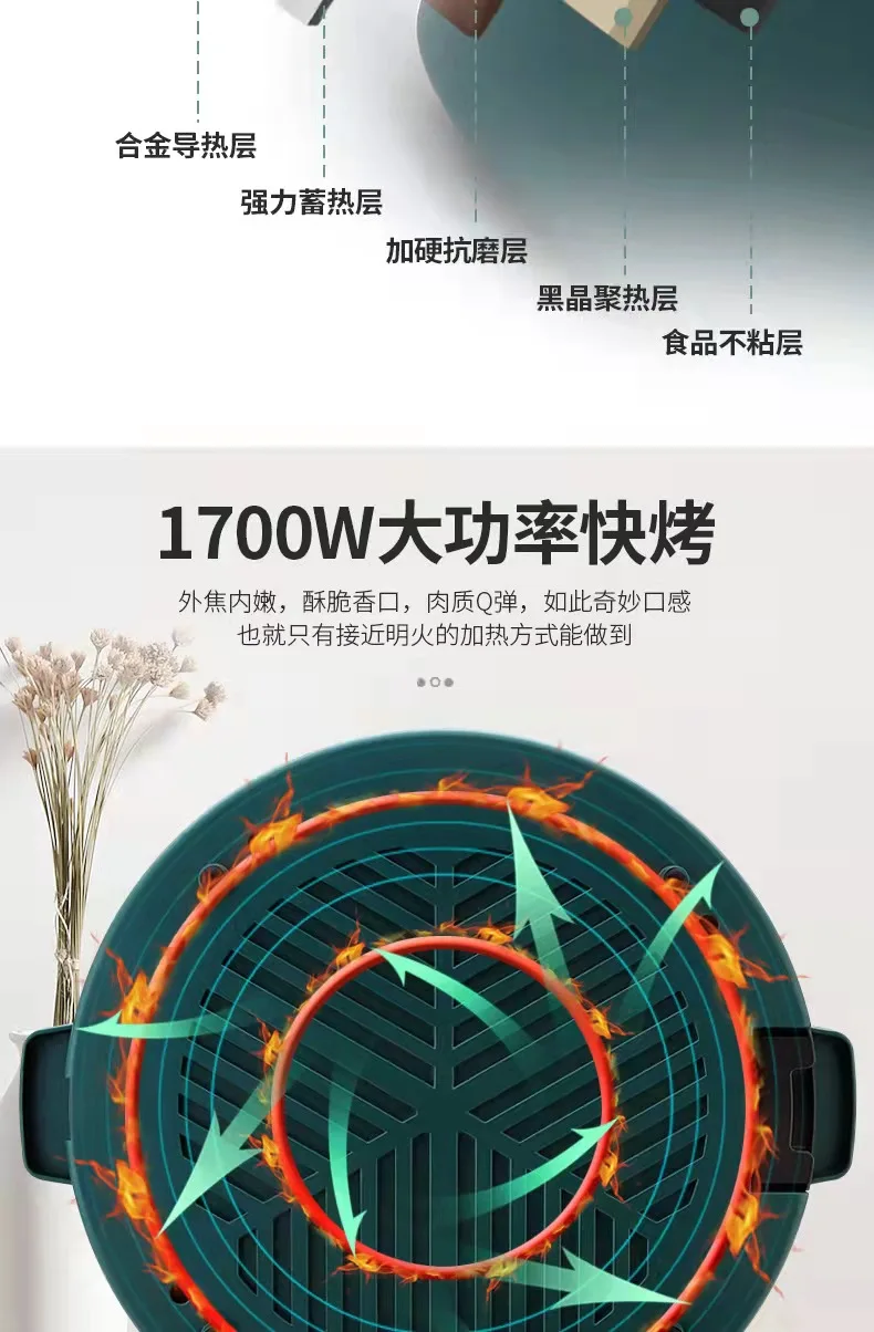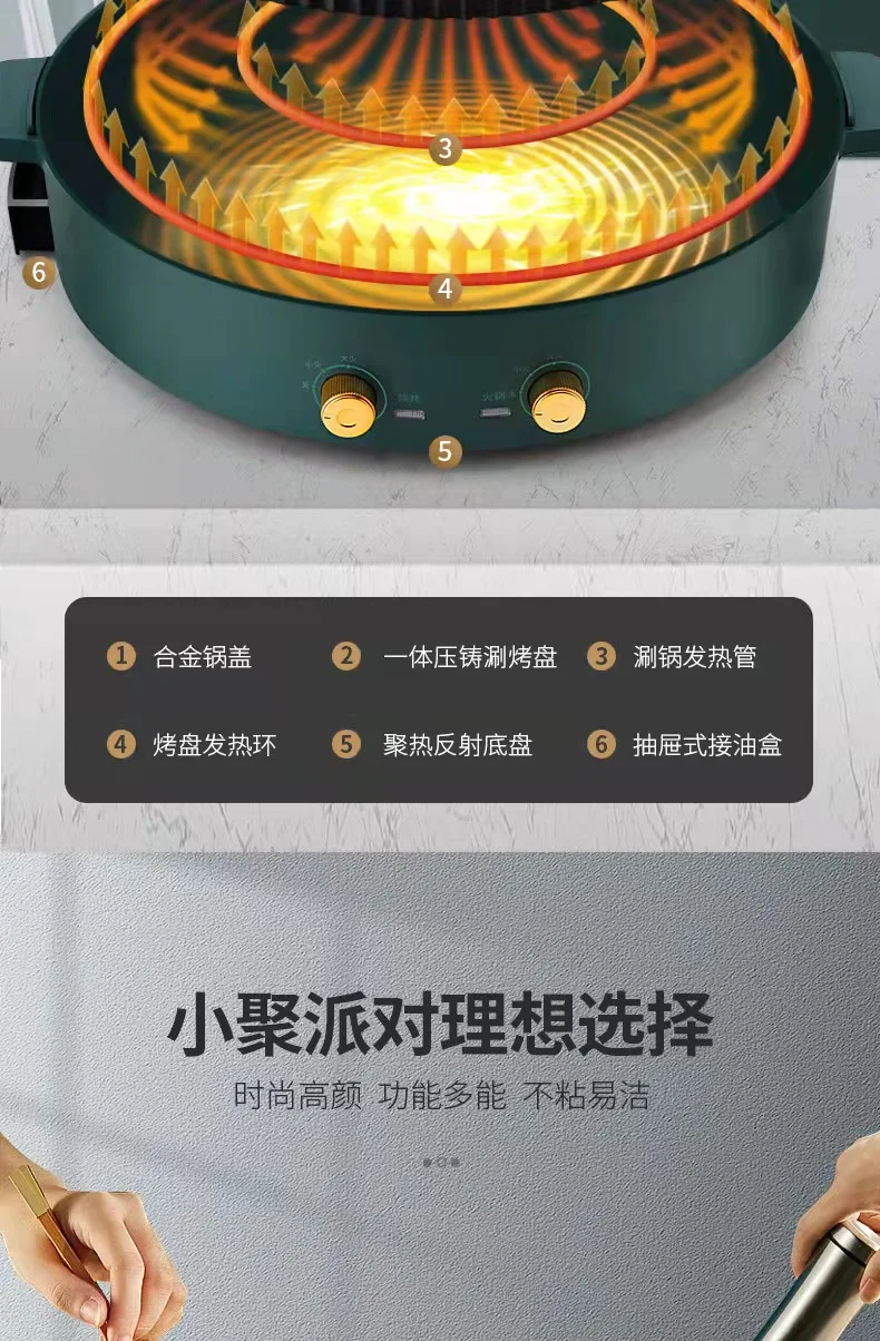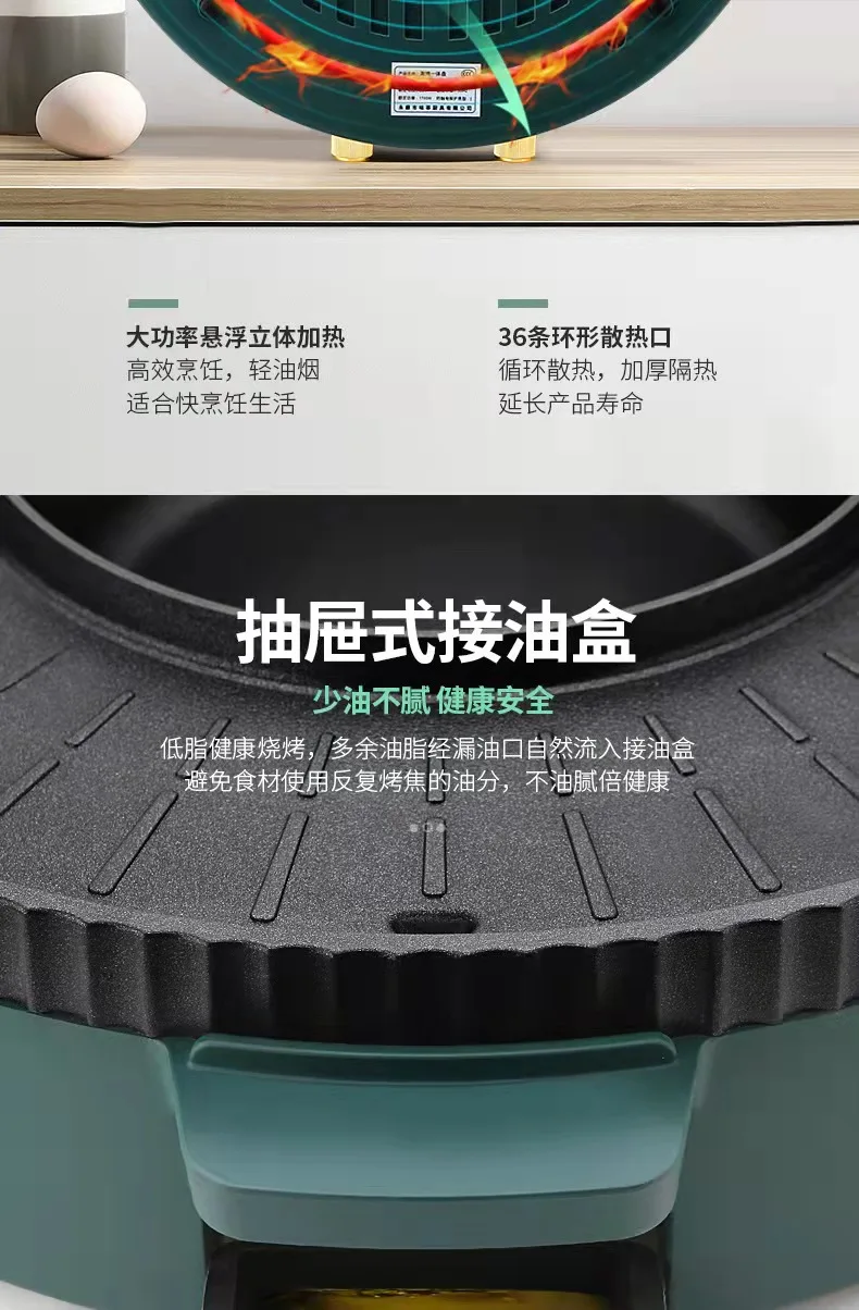 Multifunctional Electric Grill Pot Electric Pot Korean Non-stick Frying Pan Grilled Fish Household Electric Smokeless Barbecue
