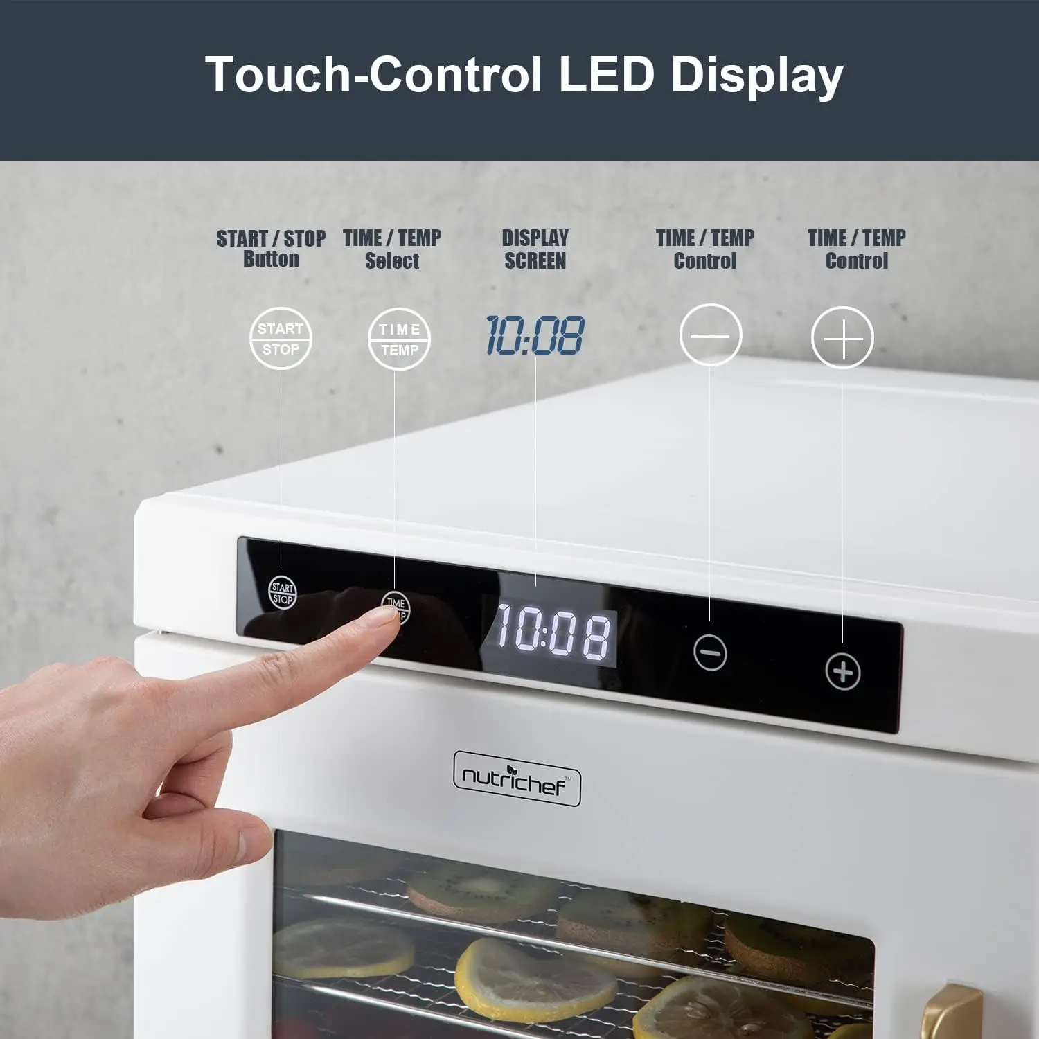 - EASY ACCESS AND OPERATION: Built with easy to use touch-control LED display. Choose to dehydrate with just a click. It also has a temperature control system with a maximum of 170°F, making it as your ideal food preserver machine