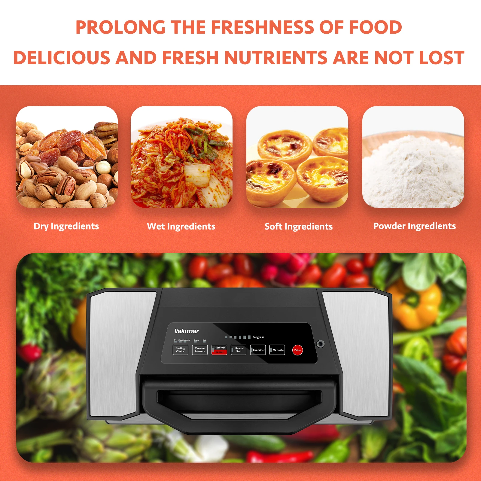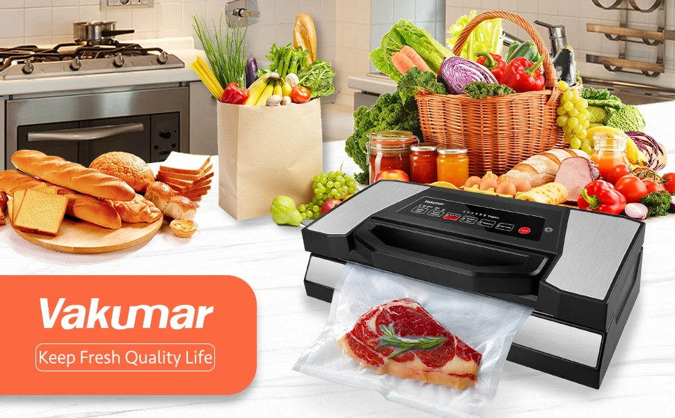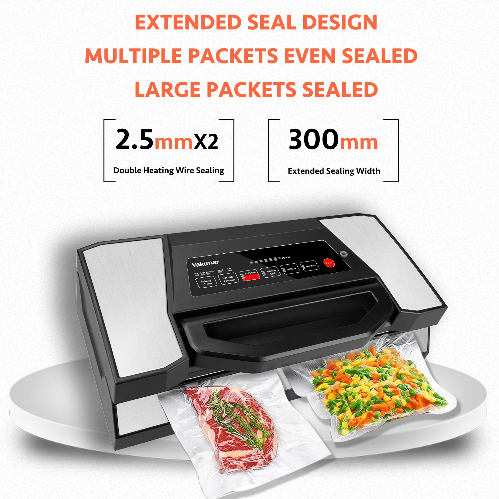 Vakumar VH5180 Kitchen Automatic Commercial Household Food Vacuum Sealer Packaging Machine Include 2 rolls Vacuum packed bags